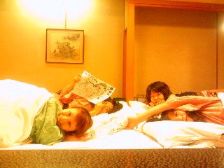 あっこが撮ってくれた、ライヴと旅の動画をみんなで見てます。