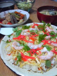 ちらし寿司と菜の花のお浸しで、簡単雛祭り気分